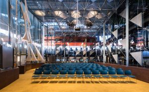 Complementary auditorium seating provides continuity, either as the same upholstered finish or often with a matching style to the loose ground floor seating. Samples are again available for testing, but as a complete bespoke option can often be modified to suit the capacity, improve comfort, or add collapsible writing desks. Click here to read more about auditorium seating.